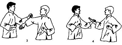 Упражнение № 5 Исходное положение. Партнеры стоят в передней стойке на расстоянии вытянутой руки. Одноименные руки соприкасаются в районе запястья в положении ТАН САУ (рис. 17).