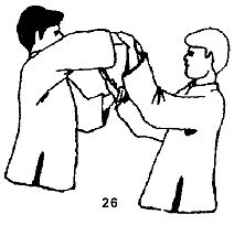 и моментально выполняете удар НОУ МУН ЧУЙ левой рукой. Ваш партнер нейтрализует удар блоком ТАН САУ (рис. 24). Далее необходимо продолжить выполнение упражнения ПУН САУ, т. е. менять положение рук (рис. 25, 26).