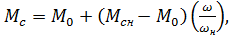 где M1, M2, ω1, ω2 – моменты и угловые скорости соответственно в первой и второй точках механической характеристики.