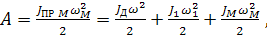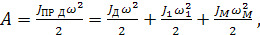 Приведение моментов инерции. Как было указано выше, для приведения моментов инерции необходимо составить уравнение баланса кинетической энергии в системе. При этом общий запас кинетической энергии эквивалентной системы может быть выражен через момент инерции, приведенный к валу двигателя JПР.Д, или через момент инерции, приведенный к валу вращающегося механизма JПР.М. Уравнение баланса кинетической энергии:
