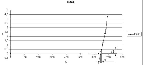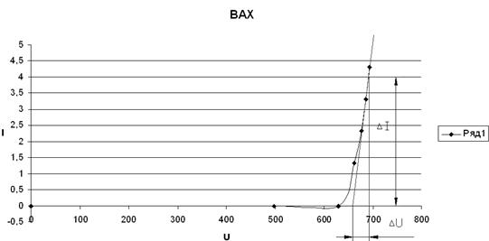 Iпр = 4 mА Провели касательную линию к графику прямой ветви вольтамперной характеристики в точке.