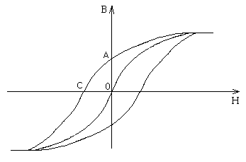 ОА – остаточная намагниченность (индукция). ОАС – коэрцитивная сила. В точке С исчезают магнитные свойства (В=0) при каких-то значениях Н. Дальнейшее уменьшение МП приводит к симметричной петле гистерезиса.