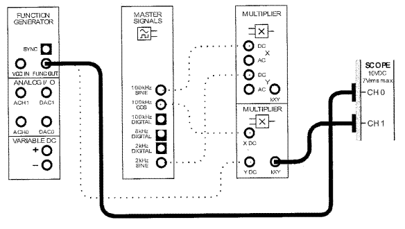 Часть 1. Получение фазово-разнесенных сигналов (PDM) 1. Запустите NI ELVIS II Function Generator VI. Настройте его: - Waveshape Sine - Frequency 2kHz - Amplitude 4Vpp - DC Offset 0V 2. Соберите схему, показанную на рисунке 5.3.