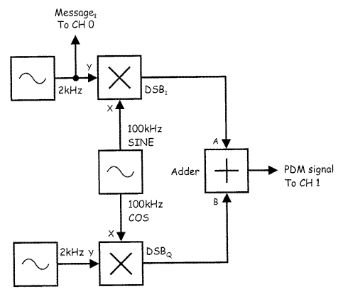 Блок-схема представлена на рисунке 5.7. Сумматор ADDER используется для сложения двух сигналов (DSBI и DSBQ) и на его выходе мы получаем PDM сигнал.