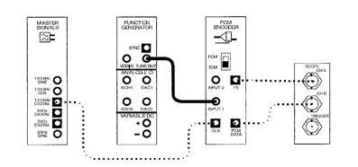 Обратите внимание, что вход модуля ИКМ кодера теперь соединен с выходом Функционального генератора. Так как на вход кодера поступает синусоида, входное напряжение продолжает изменяться. Это означает, что вы должны обратить внимание на выходные данные, которые также постоянно изменяются.
