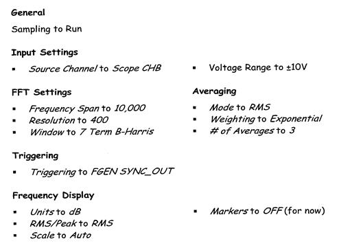 150. Активируйте вход второго канала осциллографа для исследований выходных данных ИКМ декодера, так же как и за сигналом сообщение. Вопрос 1 О каком виде сигнала говорит «ступенчатый» выход ИКМ декодера? Подсказка: Если вы не уверены, обратитесь к разделу Краткой теории данной работы либо Лаб. Работы 13. Выходной сигнал модуля ИКМ декодера выглядит практически как сообщение. Однако, они не совсем одинаковы. Вспомните, что дискретное сообщение содержит множество синусоид вдобавок к сигналу сообщения. Следующая часть лабораторной работы позволит вам проверить это, используя динамический анализатор спектров NIELVIS. 151. Закройте окно виртуального осциллографа. 152. Запустите виртуальный динамический анализатор спектров. 153. Настройте его следующим образом: