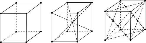 В залежності від співвідношень між величинами ребер a, b, c і величинами кутів 1) кубічну – 2) гексагональну – 3) тетрагональну – 4) ромбоедричну – 5) ромбічну – 6) моноклінну – 7) триклинну – Елементарні комірки, які мають частинки тільки в вершинах, називають простими чи примітивними. Якщо частинки є не тільки у вершинах елементарної комірки, але і в інших точках, то комірки називаються складними. Ми обмежимося розглядом простих кристалічних граток, які володіють кубічною симетрією. До них відносяться проста (рис. 2, а), об’ємноцентрована (рис. 2, б) і гранецентрована гратка (рис. 2, в).