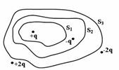 Дана система точечных зарядов в вакууме и замкнутые поверхности S1, S2 и S3. Поток вектора напряженности электростатического поля отличен от нуля через...