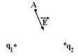 На рисунке показано направление вектора е напряженности суммарного электрического поля точечных зарядов q1 и q2 в точке А.