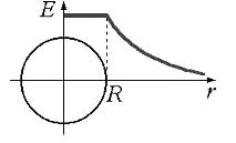 Укажите, на каком графике правильно показана зависимость напряженности электростатического поля Е от расстояния r между центром равномерно заряженной проводящей сферы радиусом R и точкой, где определяется напряженность.