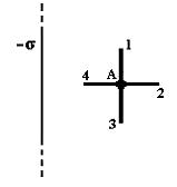 Поле создано бесконечной равномерно заряженной плоскостью с поверхностной плотностью заряда -σ. Укажите направление вектора градиента потенциала в точке А.