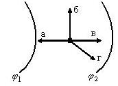 Протон перемещаясь между двумя эквипотенциальными поверхностями. Если φ1> φ2,то протон будет двигаться в направлении...