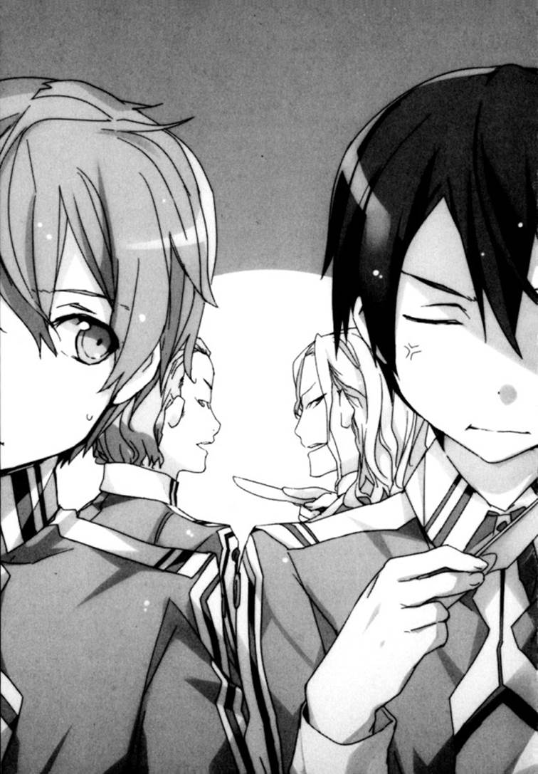 – Ху-ху, тоже верно. Я слышал, слуги-ученики обязаны выполнять все, что требуют их наставники. – Если бы у нас был наставник-простолюдин или с запятнанным прошлым – даже и не знаю, что нас заставили бы делать. Если среагируем на их насмешки – сыграем им на руку. Так что я просто изобразил спиной пренебрежение и сосредоточился на собственной вилке. Но, хоть мне и удалось не взорваться, внутри меня все кипело. Если б они говорили только о нас с Юджио, то ладно еще, но их «простолюдин» относился к наставнику Юджио Голгоссо-семпаю, а «запятнанное прошлое» – к моей наставнице Солтерине-семпай. Способы этой парочки доставать нас не сводились к насмешкам над нашими наставниками. Они ведь с самого начала нас имели в виду, когда говорили, что «некоторые просто берут и приходят». Здесь были и другие слуги-ученики, помимо нас с Юджио, но только мы заявились впритык ко времени ужина. Так что их насмешки были нацелены на нас с самого начала. Мы еще в Заккарии встречали довольно неприятных типов. Например, Игом Заккалайт, с которым я сражался в турнире мечников, был вполне типичным снобом; но то, как эти двое в Академии трепали языками, когда хотели ужалить побольнее, весьма впечатляло. Это была одна из причин, почему мысль «здешние жители – всего лишь искусственные Пульсветы, ИИ» больше не приходила мне в голову; способствовал этому и их весьма богатый словарный запас. – …Ладно, всего несколько дней еще продержаться. Эти слова тихо произнес сидящий рядом со мной Юджио, отламывая кусок булки. Смысл их был – «когда станем старшими учениками, мы и эти двое будем в разных общежитиях». Для Юджио это были довольно-таки нахальные слова, однако произносил он их не без оснований. Из 120 младших учеников лишь двенадцать становятся «слугами-учениками»; выбирают их двенадцать «элитных учеников» – второкурсников, закончивших первый курс с лучшими результатами. Когда человек становится слугой, он освобождается от обязанностей по уборке общежития и починке своего снаряжения. Однако после занятий слуга должен явиться в общежитие элитных мечников и выполнять обязанности перед своим наставником: убираться в его комнате, прислуживать ему лично и быть спарринг-партнером. Двое, перекидывающиеся ядовитыми репликами, в число слуг не входили – это означало, что на вступительных экзаменах их оценки были хуже, чем у нас с Юджио. За прошедший год их положение в списке колебалось где-то в двадцатых-тридцатых номерах, так что прогноз Юджио, что они не станут элитными учениками, выглядел разумно. …Но так ли это на самом деле?.. Держа в руке столовый нож, я глядел на фигуры за моей спиной, отражающиеся в полированном серебре. Та парочка, сидящая за столиком чуть поодаль, продолжала обмениваться саркастическими фразочками, оглядываясь по сторонам. Парня с зачесанными назад серыми волосами, который сидел слева, сложив руки на затылке, звали Умбер Зизек, он был, кажется, отпрыском дворянской семьи четвертого класса. Справа сидел ученик с вьющимися светлыми волосами, стянутыми сзади в хвост, – старший сын дворянина третьего класса Райос Антинос. В Академии дворяне первого класса не обучались (похоже, они могли позволить себе нанять персональных преподавателей и обучаться у них), а из второго класса были Уоло Левантейн и еще несколько человек. Так что дворяне третьего класса были