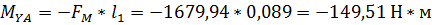 Реакция опоры в сечении A