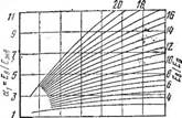Упрощение уравнения допустимо, поскольку корень кубический из отношения членов, содержащих р,гр и рб, близок к единице. Изгибающие моменты, действующие на полосу шириной, равной единице, равны: а) от нагрузки, равномерно распределенной по кругу радиуса радиальный момент (Х\Л1.3) б) сосредоточенной силы радиальный момент Мра Д = (Л+(Х6В)Р; кольцевой момент Мкол=(В + [1вИ)Р, (XVII.4) где Р — сосредоточенная нагрузка нли равнодействующая равномерно распределенного давления, кгс; Цв — коэффициент Пуассона для бетона; С — коэффициент, зависящий от произведения аЦ; А я В — параметры, зависящие от произведения аг; г — расстояние от точки приложения сосредоточенной силы до точки, в которой определяется напряжение, см. В формуле (XVI 1.4) Р = рлР2, где р — интенсивность равномерно распределенной нагрузки. Значения параметров А, В, С приведены в табл. XVII 2.