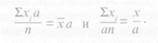 Например, если ко всем указанным выше числам (10, 11, 12, 13 и 14) прибавить пять единиц, то и средняя арифметическая величина увеличится на пять единиц (х = 17). Если соответственно из каждого числа вычесть три единицы, то и средняя арифметическая величина уменьшится на три единицы (х = 9). Четвертое свойство — если каждое из значений вариационного ряда умножить или разделить на одно и то же число, то средняя арифметическая величина увеличится или уменьшится во столько же раз, т. е.