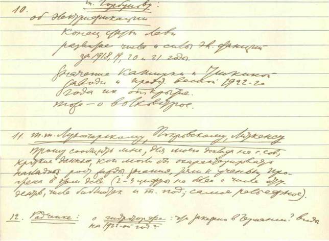 исполнено Вами лишь 14 декабря 17/ХП. 21 г. Продиктовано по телефону Печатается впервые, по тексту, написанному рукой Л. А. Фотиевой ЗАПРОСЫ НАРКОМАТАМ В СВЯЗИ С ПОДГОТОВКОЙ ОТЧЕТА ВЦИК И СНК НА IX ВСЕРОССИЙСКОМ СЪЕЗДЕ СОВЕТОВ140