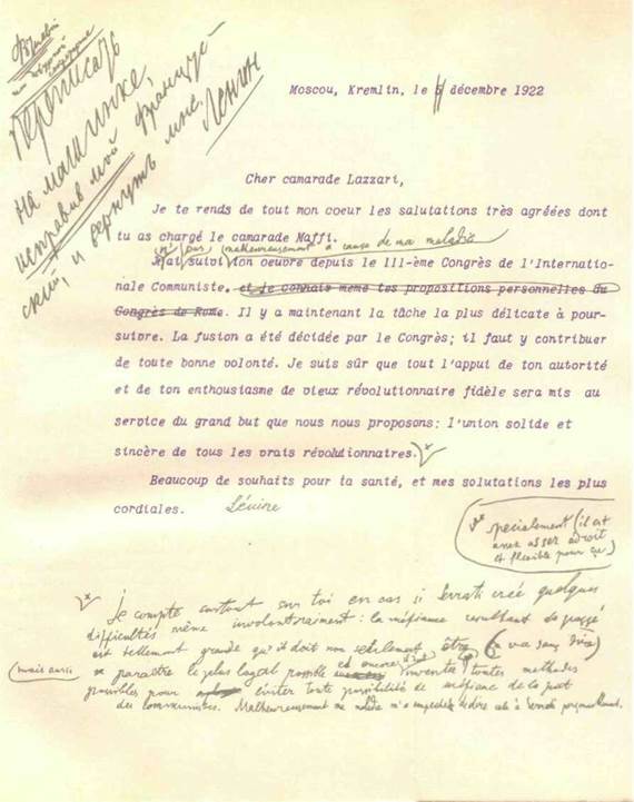 Письмо В. И. Ленина К. Лаццари и поручение секретарю. — 11 декабря 1922 г.