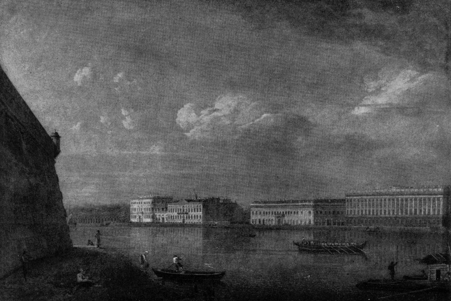 В работах Алексеева перед нами впервые в русском искусстве предстает не только документально точный, но и высокохудожественный образ города. В его видах Петербурга раскрывается обобщенный образ «Северной Пальмиры»; они исполнены того светлого пафоса, той созерцательной, мягкой лиричности, которые Звучат в описаниях русской столицы, оставленных современниками Алексеева. Таковы его «Вид Дворцовой набережной от Петропавловской крепости» (1794; Третьяковская галлерея), «Вид Петропавловской крепости» (1793; музей-усадьба Архангельское). В его пейзажах Москвы ощущается романтическое восприятие ее как старорусского города (акварель «Китайгородская стена», 1800—1802). Во второй половине 18 в. в русской живописи появляются и первые ростки бытового жанра. Академия рассматривала бытовой жанр как низший по сравнению с исторической картиной род живописи. Жанровые темы, рекомендуемые Академией, сводили бытовую живопись к бесхитростному бытописательству, ориентировали художников на наследие так называемых малых мастеров голландской живописи 17 века. Жанровые сцены, допускаемые академической эстетикой в пейзаже, носили идиллический или этнографический характер.