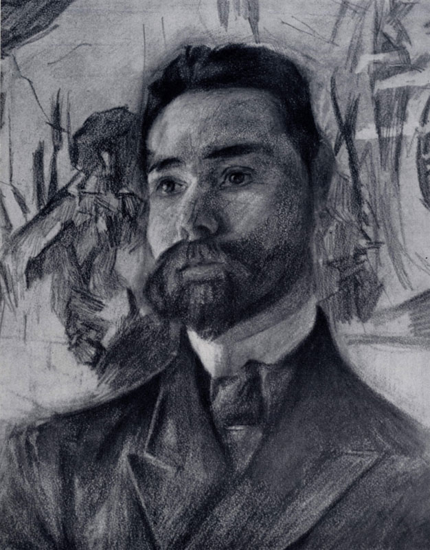 илл. 24 Психологическая и эмоциональная сложность образов в картинах Врубеля тесно связана с его талантом портретиста. Многочисленные автопортреты, трогательный и трагический портрет сына (1902; ГРМ), лирические портреты певицы Н. И. Забелы-Врубель, акварельный, насыщенный в цвете портрет Т. С. Любато-вич в роли «Кармен» (1890-е гг.; ГТГ), супругов К. Д. и М. И. Арцыбушевых (1897; ГТГ), С. И. Мамонтова (1897, не окончен; ГТГ) и особенно поэта В. Я. Брюсова (1906, не окончен; ГТГ) раскрывают богатство творческих возможностей Врубеля как портретиста. Большинству врубелевских портретов присущи страстное, вдохновенное отношение к человеку, редкая сила утверждения его духовной красоты, тонкости, одаренности. Образы в них исполнены большой психологической напряженности, патетики чувств.