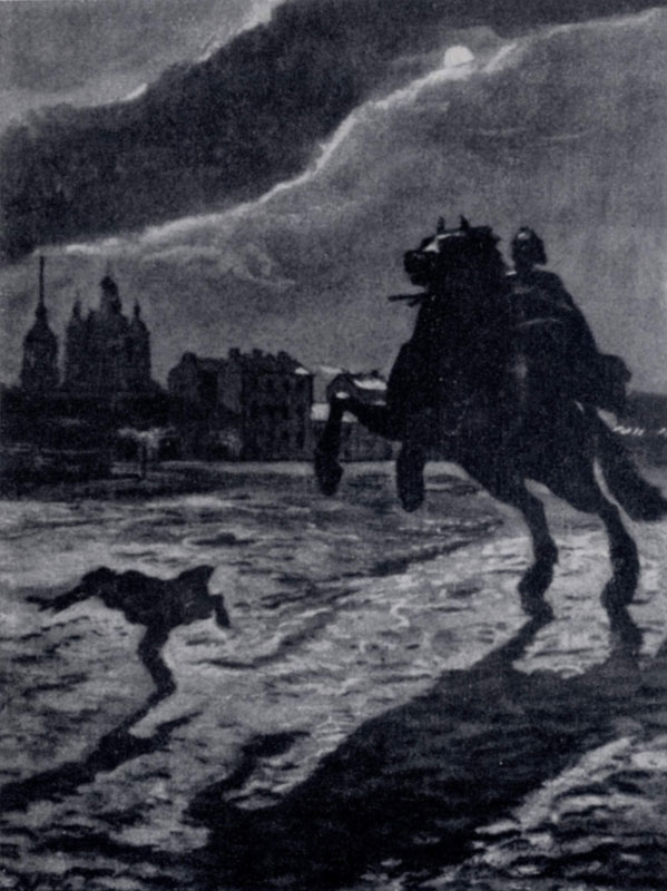 илл. 25 б А. Бенуа весьма тяготел к театру и охотно выступал как театральный художник. Значительным вкладом в русское искусство являются его иллюстрации к произведениям русской классической литературы, а также к книгам для детей («Азбука в картинках»). Среди иллюстраций Бенуа самыми вдохновенными являются рисунки к «Медному всаднику» А. С. Пушкина. Работа над ними была начата в 1903 г. и продолжена через много лет. Все иллюстрации: заставки, концовки, полуполосные рисунки — передают и сюжетное повествование поэмы и дополняют его многими образами и мотивами, возникшими по ассоциации с текстом. Самая впечатляющая и драматическая сцена «тяжело-звонкого скакания» наиболее созвучна пушкинской поэме. В то время как Серов, Врубель мыслили иллюстрацию самоценным рисунком, почти не связанным с книгой, А. Бенуа, Лансере, Добужинский искали единства всех декоративных элементов книги. Особенно много сил и внимания отдавал этому специфическому искусству Евгений Евгеньевич Лансере (1875 — 1946). Русская литературная иллюстрация не знала ранее такого богатства изобразительных мотивов в их гармонической связи с книгой и книжной страницей, не достигала такого умелого сочетания содержательности и декоративности рисунка, высокой культуры книги, какой добились лучшие графики этого периода. Будучи идеологом объединения, А. Бенуа вел разностороннюю научную и критическую деятельность, сочетая интересы историка и знатока искусства. Субъективность взглядов и оценок, враждебная тенденциозность в отношении к передвижничеству сказались в ряде его выступлений. Но в других работах, посвященных более отдаленным эпохам, Бенуа удалось открыть современникам очарование и ценность многих художественных явлений прошлого. Уход от современности и ее жгучих социальных проблем в эфемерный, придуманный мир, лишенный исторической и социальной конкретности, особенно показателен для ряда произведений Константина Андреевича Сомова (1869 — 1939), блестяще владевшего профессиональным мастерством. Жизнь представлялась художнику всего лишь «человеческой комедией», Его творчество пронизано скептицизмом и горькой иронией, ощущением бренности скоропреходящего бытия.