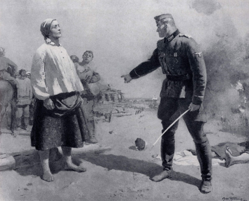 илл. 73 Глубоко национальный, русский характер искусства С. Герасимова ярко обнаружился в картине «Мать партизана» (1943 — 1950; ГТГ). Нравственная стойкость, гордое сознание своего превосходства перед лицом врага, топчущего родную землю, беззаветное мужество, вызывающее в памяти образ Ивана Сусанина, — все это удалось передать С. Герасимову с покоряющей силой. В последние годы С. Герасимов работает над историческими композициями. Его картина «За власть Советов» (1957) — свидетельство идейно-художественной зрелости мастера. В этом произведении выразительны характеристики партизан, группа которых выступает как нерасторжимое целое, как единая воля, направленная на победу революции.