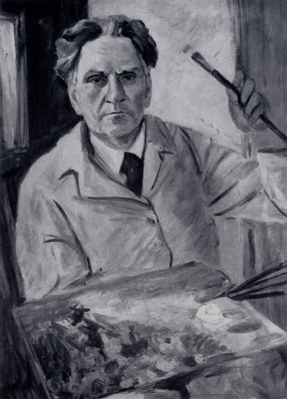 илл. между стр.144 и 145 Нестеров достигает жизненности портрета Шадра, изображая скульптора в действии. И в других своих работах художник избегает статичности композиции. Люди в его портретах жестикулируют, ведут немой разговор, обращаются к зрителю или невидимому собеседнику. Эта активность в полную силу ощущается в портрете академика И. П. Павлова. В напряженной позе великого физиолога, в положенных на стол руках с крепко стиснутыми пальцами чувствуется натура решительная, объятая внутренним горением. Открывающийся за террасой вид на домики поселка подчеркивает связь ученого с окружающим миром, лишает его образ замкнутости, изолированности и вместе с тем усиливает внутреннюю собранность, которая для него характерна. Трезвый ум ученого, ясность и убедительность его научных построений, наконец, энергичный и решительный характер Павлова — все это находит свое воплощение в композиционной стройности портрета, в холодноватом, прозрачном колорите. Лучшие портреты Нестерова были созданы в 30-х гг. Художник уловил в своих современниках нечто типичное для советских людей того времени: напряжение творческих поисков, жажду деятельности, больших свершений. Тем самым он выразил в своих портретах важные черты эпохи, существенные особенности советского общества, идущего вперед. Наряду с Нестеровым важную роль в формировании советской портретной живописи сыграл И. Э. Грабарь. Портреты Н. Д. Зелинского (1932; ГТГ), В. И. Вернадского (1935), С. А. Чаплыгина (1935; Москва, Академия наук СССР) и другие работы Грабаря отличаются вдумчивостью художественного замысла и выполнения. Выразительность образа создается внимательной фиксацией внешних черт портретируемого, что позволяет художнику точно и убедительно характеризовать человека. Свобода живописных решений дает возможность Грабарю достигать разнообразия и жизненной непосредственности изображений. Серьезность и глубина раскрытия большой идеи — качества, присущие и картине Грабаря «В. И. Ленин у прямого провода» (1933; Москва, Музей В. И. Ленина). Дар живописца блестяще проявился в пейзажных полотнах Грабаря. Его картина «Озеро» (1926; ГРМ) и другие покоряют свежестью восприятия природы, мастерством передачи ее различных состояний. В 30-е гг. и в последующее время активно работает в жанре портрета А. М. Герасимов. Этот художник стремился достичь непринужденности и свободы в характеристике модели. В своих лучших портретах А. К. Тарасовой (1939), И.М.Москвина (1940), Б. Н. Яковлева (1951; ГТГ), М. П. Кристи (1951; ГТГ), Н. Г. Машковцева (1952), в групповом портрете старейших художников: И. Н. Павлова, В. Н. Бак-шеева, В. К. Бялыницкого-Бируля, В. Н. Мешкова (1944; ГТГ) — Герасимов добивается предельной естественности и живости трактовки образа человека.