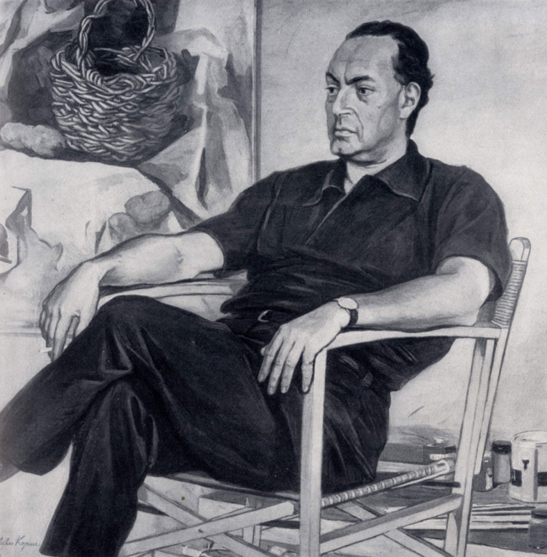 илл. между стр. 200 и 201 В области портрета в послевоенные годы продолжает плодотворно работать П. Д. Корин. Человек в его полотнах предстает со всей характерностью индивидуальных качеств и черт. Вместе с тем его образ выражает ярко и определенно идеал художника, которому близки люди большого волевого напряжения, сильных характеров, отмеченные творческим дерзанием. В портрете скульптора С. Т. Коненкова (1947; ГТГ) Корин, отбросив все мелкое, повседневное, запечатлел лишь то значительное, что выделяет Коненкова среди других людей и делает его выдающейся личностью. В предельной заостренности внутренних черт модели, в чеканности пластической формы, в ясности колористического решения таится сила этого портрета. Великолепны по остроте характеристик портреты М. С. Сарьяна (1957), Р. Н. Симонова (1956), Ренато Гуттузо (1961), художников Кукрыниксов (1958). В последнем полотне мастер прекрасно решил сложнейшую задачу группового портрета. Творческое содружество трех художников, каждый из которых характеризован предельно выразительно, находит здесь очень ясное воплощение. Но не только этим замечателен портрет. Это картина большого общественного и человеческого смысла. Кукрыниксы представлены как боевой авангард советского искусства, которое самым прямым и непосредственным образом участвует в делах и днях своей страны. Отсюда героическая концепция портрета, лишенного и намека на интимность и будничную повседневность. В искусстве Корина ярко выступают важнейшие черты советской портретной живописи — утверждение высоких достоинств человека и значительности целей, которые он преследует, силы его характера, благородства душевного мира, пафос гражданственности. В большей или меньшей степени эти черты ощущаются и в работах других советских портретистов послевоенных лет. Среди работ В. П. Ефанова (р. 1900) выделяются портреты академиков А. И. Абрикосова, А. В. Топчиева, художника В. Н. Бакшеева и другие. Ефанов остро улавливает сходство, стремясь выразительностью внешних черт модели передать характерные особенности ее внутреннего склада.