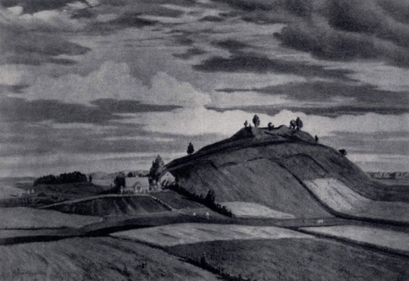 илл. 90 а В пейзажной живописи ярко раскрывается национальное своеобразие искусства отдельных советских республик. Произведения латышей Э. Ф- Калныня (р. 1904) и В. К. Калнрозе (р. 1894) отличает сдержанная цветовая гамма — жемчужно-серебристый колорит, столь свойственный природе Прибалтики. Работы литовского живописца А. И. Жмуйдзинавичуса привлекают гармоничностью композиционных решений, настроением покоя и мудрой сосредоточенности. Полотна киргизского живописца Г. А. Айтиева (р. 1912) дают представление о величавом горном ландшафте юго-востока нашей страны. Картины украинца И. И. Бокшая (р. 1891) радуют насыщенностью цвета, им присуща повышенная Эмоциональность. Работы русских живописцев А. М. Грицая (р. 1914), Б. Г. Яковлева и других мастеров воздействуют определенностью цветовых сочетаний, ясностью художественных образов. Значительное место в советской пейзажной живописи занимают работы армянских живописцев, в частности М. С. Сарьяна.