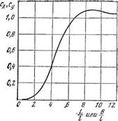 В этих формулах: а — коэффициент линейного распределения бетона; Ев и ц — модуль упругости и коэффициент Пуассона бетона; Сх и Су — параметры, зависящие от размеров плиты в плане и характеристики ее жесткости. Значения Сх и Су даны на рис. XVII.7 в долях отношений и -г, где и Ьу — характеристика жесткости плиты (радиус относительной жесткости), который определяется по формуле