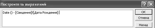Составить выражение, используя данные таблицы Сведения и функцию Date и нажать ОК.