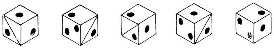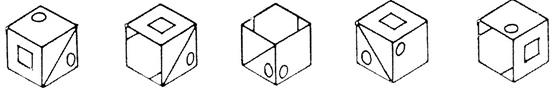 1) 2) 3) 4) 5) 19. Герой рассказа О. Генри дал поросенку такого пинка, что тот полетел, опережая собственный визг. С какой скоростью летел поросенок? 1) 60 км/ч; 2) 100 м/с; 3) 345 м/с; 4) 120 км/ч 20. Какое из следующих слов отлично от других? 1) звонить; 2) болтать; 3) слушать; 4) говорить. 21. Сколько из 5 пар чисел являются полностью одинаковыми? 5296 5296 66986 69686 834426 834426 7354256 7354256 61197172 61197172 22. Предприниматель купил несколько ноутбуков за 35000$, а продал их за 55000$, заработав на каждом 500$. Сколько ноутбуков он продал? 23. В классе из 30 детей 15 умеют играть в настольный теннис, а девятнадцать – в футбол. 6 детей не умеют играть ни в теннис, ни в футбол. Сколько детей умеют играть и в теннис, и в футбол? 24. Рассмотрите этот кубик и узнайте его среди пяти похожих. Укажите ее номер.
