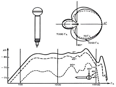 Мы уже знаем, что с помощью направленного микрофона можно выделять один или несколько источников звука, исключая остальные, что такие микрофоны меньше воспринимают отзвуки студии и поэтому их можно использовать дальше от источника, давая таким образом «общий план» протяженного источника звука, более равномерно охватывая его. Микрофоны с характеристикой направленности в форме «восьмерки» обладают отличными свойствами в том, что касается остроты характеристики направленности, однако размеры заднего лепестка можно считать недостатком, если только он не принимает одновременно какой-либо другой источник звука: задний лепесток может принимать ненужный отзвук помещения или же звук от посторонних источников. В этих условиях, когда требуется достаточно острая диаграмма направленности, характерная для двунаправленных микрофонов, но не нужен полный сигнал с задней стороны микрофона, характеристика направленности в виде суперкардиоиды и представляет собой желаемый компромисс. Это особенно важно для выделения инструментов при многомикрофонной записи музыки или при записи отдельных источников звука в сравнительно гулкой акустической обстановке. Именно для таких целей и были разработаны микрофоны с неизменяемой характеристикой направленности в виде суперкардиоиды.