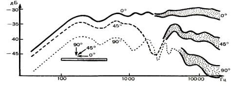 Принцип работы интерференционной трубки только что был описан: главное, чтобы различные части одной и той же волны, приходящей к микрофону сбоку, оказались в противофазе. Такой метод обладает двумя существенными недостатками. Первый присущ всем остронаправленным микрофонам: при колебаниях, длина волны которых больше габаритов конструкции, характеристика направленности становится такой же, как характеристика направленности применяемого в них капсюля. У микрофонной «пушки» с интерференционной трубкой длиной около 40 см угол раскрытия характеристики направленности для частот выше 1500 Гц составляет 50—60°. Однако на 250 Гц характеристика направленности в