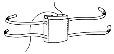 Поясная сумка для передатчика радиомикрофона старого типа. Сумка должна быть сшита в точности по размерам передатчика. Она держится на прочных лентах длиной около 60 см, пришиваемых с каждой стороны сверху и снизу. Если передатчик на миниатюрных лампах носить в кармане, он будет испытывать сильную трясцу, в результате чего могут возникать помехи передаваемому звуковому сигналу — так называемый «микрофонный эффект» при сильных вибрациях в электронных лампах. Современные передатчики на полупроводниковых схемах лишены этого недостатка, легко крепятся к одежде.