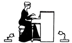 Арфа. При игре на арфе исполнитель покачивает резонатор. Механические призвуки могут производить педали, управляющие тональностью извлекаемых звуков, они находятся у основания арфы (П). В положении 1 микрофон хорошо воспринимает звучание арфы, однако если его надо записать с более близкого расстояния, то рекомендуется выбирать положение 2 (оно не столь очевидно) — позади исполнителя и несколько выше его головы. При записи в ближней зоне (например, когда арфу используют в современной развлекательной музыке для создания необычных звуков) микрофон можно направить прямо на резонатор.