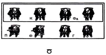 Деревянные духовые. Типичная схема расположения деревянных духовых в оркестре, Ф — флейта; П — флейта-пикколо; Г— гобой; К — кларнет; Фо — фагот. Обычно музыканты сидит на возвышении по центру оркестра, позади скрипок. Если общий микрофон установлен достаточно низко, то он может «не замечать» деревянные духовые, воспринимая больше звучание струнных. Тогда нужен дополнительный микрофон: можно использовать двунаправленный микрофон, наклоненный вниз под углом 45°, так, чтобы направление минимального приема было как раз на группу инструментов впереди деревянных.