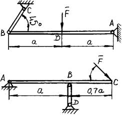 68. Что такое главный вектор и главный момент плоской системы сил? 69. Как аналитически найти главный вектор и главный момент данной плоской системы сил? 70. В чем сходство и в чем различие между главным вектором плоской системы сил и ее равнодействующей? 71. Сформулируйте теорему Вариньона. 72. Приведите векторную запись теоремы Вариньона. 73. Сформулируйте теорему Вариньона для произвольной плоской системы сил. 74. Чему равен главный вектор системы сил? 75. Чему равен главный момент системы сил при приведении ее к точке? 76. Тело движется равномерно и прямолинейно (равновесие). Чему равны главный вектор и главный момент системы? 77. Тело вращается вокруг неподвижной оси. Чему равны главный вектор и главный момент действующей на него системы сил? 78. Зависят ли главный вектор и главный момент заданной системы сил от выбора центра приведения? 79. Каковы возможные случаи приведения сил, расположенных произвольно на плоскости? 80. К какому простейшему виду можно привести систему сил, если известно, что главный момент этих сил относительно различных точек на плоскости: o а) имеет различную числовую величину; o б) имеет постоянное значение, не равное нулю; o в) равен нулю. 81. Как определяется модуль и направление главного вектора системы параллельных сил на плоскости? 82. При каком условии сила, равная главному вектору плоской системы сил, является равнодействующей этой системы? 83. Каковы условия и уравнения равновесия плоской системы параллельных сил на плоскости? 84. Какое твердое тело называют рычагом? 85. Какое условие выполняется, когда рычаг находится в покое? 86. Чему равен главный вектор и главный момент произвольной плоской системы сил? 87. Сформулируйте три формы уравнений равновесия произвольной плоской системы сил. 88. Какие задачи статики называют статически определимыми и какие статически неопределимыми? 89. Какую из форм уравнения равновесия целесообразно использовать при определении реакций в заделке? 90. Какую из форм уравнения равновесия целесообразно использовать при определении реакций в опорах двухопорной балки и почему? 91. В чем сущность решения задач на равновесие сочлененной системы тел? 92. Невесомый груз нагружен силой F, как показано на рисунке. Определите (воспользовавшись, если нужно, только калькулятором), под каким углом к брусу направлена реакция шарнира А. o а) 45°; o б) 145°.