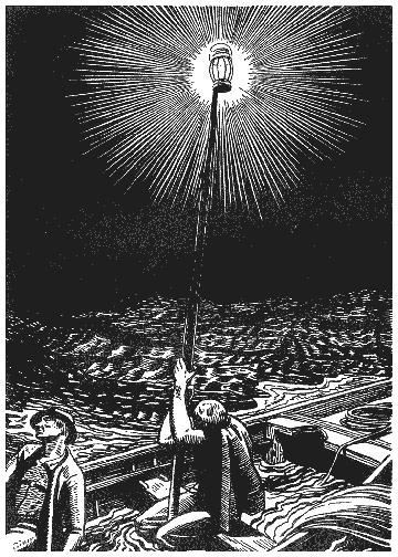 Так мы ткали и ткали, как вдруг какой-то странный звук, протяжный, нечеловеческий, дикий и певучий, заставил меня вздрогнуть, моток свободной воли выпал у меня из рук, и я уставился в облака, откуда упал, будто на крыльях, этот крик. Высоко надо мной стоял на салинге этот безумец из Гейхеда – Тэштиго. Устремившись вперёд всем телом и, словно скипетр, простёрши вдаль руку, он с короткими, внезапными перерывами тянул свой дикий вопль. Надо думать, в это самое мгновение такой же крик испустили по всему морю сотни дозорных, вознесённые над палубами своих китобойцев на такую же головокружительную высоту; но мало из чьей груди мог этот древний китобойский клич вырваться с такими великолепными модуляциями, как у индейца Тэштиго. Краснокожий страж как бы парил над нами в воздухе, с такой неистовой жадностью вглядываясь в горизонт, что казалось, это некий пророк или провидец, узревший тени Судьбы и своими дикими воплями возглашающий их приближение. – Фонтан на горизонте! Вон, вон! Фонтан на горизонте! Фонтан! – Где, где? – Справа на траверзе, милях в двух отсюда! Целое стадо! В тот же миг всё пришло в движение. Кашалот пускает фонтаны с такой же надёжной размерностью, с какой тикают часы. И по этому признаку китоловы отличают эту рыбу от других представителей её рода. – Хвосты показывают! – снова раздался голос Тэштиго; киты скрылись под водой. – Живей, стюард! – вскричал Ахав. – Время! Пончик кубарем скатился вниз, взглянул на часы и с точностью до одной минуты сообщил Ахаву время. Корабль между тем был приведён к ветру и теперь спокойно покачивался на волнах. Тэштиго дал знать, что киты ушли под воду, держа курс по ветру, так что мы твёрдо рассчитывали увидеть их теперь прямо по носу. Ибо к своему чудесному искусству, нырнув в одном направлении, развернуться в глубине под прикрытием водной толщи и плыть с огромной скоростью в прямо противоположную сторону, к этому коварному приёму, многократно замеченному за кашалотом, на этот раз киты не стали бы прибегать; ведь нельзя же было предположить, что замеченные Тэштиго киты могли от этого всполошиться, да и вообще как-то почуять наше присутствие. А пока что один из матросов, который не входил в команду вельбота и должен был всё время оставаться на судне, сменил индейца на верхушке грот-мачты. Дозорные с фок– и бизань-мачт спустились на палубу, кадки с линём были установлены на своих местах, шлюпбалки выведены за борт, грота-рей обрасоплен, и три вельбота повисли над волнами, словно три коробочки морского укропа на крутых прибрежных скалах. А их команды, охваченные нетерпением, выстроились у борта, одной рукой ещё держась за поручни и поставив уже ногу на планшир. Так стоят наготове матросы у бортов военного корабля, идущего на абордаж. Но в этот решающий миг вдруг раздалось восклицание, заставившее всех перевести взгляд с китов на сумрачного Ахава. И мы, содрогнувшись, увидели, что он стоит в окружении пяти тёмных призраков, казалось, только что возникших из воздуха.