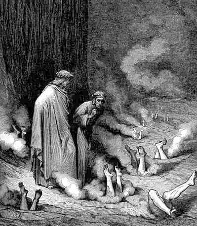 «Кто б ни был ты, поверженный во тьму Вниз головой и вкопанный, как свая, Ответь, коль можешь», — молвил я ему.