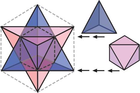 Рис. 4.2 Октаэдр (справа) и его расположение внутри переплетенного тетраэдра