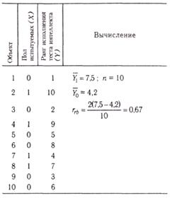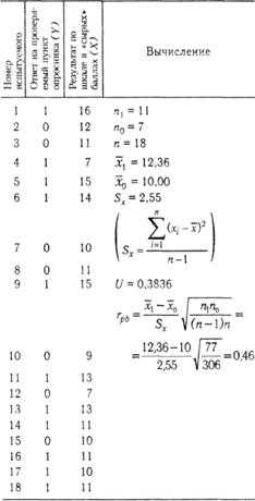 Таблица 11 Вычисление рангово-бисериальной корреляции rrb при сопоставлении результатов теста у девочек(1) и мальчиков(О)