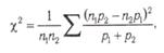 где n1 и n2 — объемы сравниваемых выборок, p1 и p2 — частоты первого и второго рядов. Нулевая гипотеза сводится к тому, что сравниваемые выборки взяты из одной и той же совокупности генеральной и, следовательно, несовпадение между частотами p1 и р2 носит случайный характер. К. χ 2 обычно используется для проверки гипотез о соответствии (согласии) эмпирического распределения теоретическому (см. приведенные выше примеры); при проверке гипотез о статистической независимости признаков (при