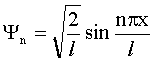 | Волновая функция, описывающая состояние частицы в бесконечно глубокой одномерной потенциальной яме где l - ширина ямы, х - координата частицы в яме (0 ≤ x ≤ l), n - квантовое число (n=1,2,3...).