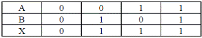 Пример выполнения функции умножения: устройство, подключенное через согласующий усилитель к выходу элемента И сработает только тогда, когда на входах этого логического элемента сработают оба датчика, контролирующие температуру и влажность, например, в стиральной машине. Логическое сложение переменных А и В есть логическая функция Х, которая истинна, когда хотя бы одна из входных переменных истинна. Таблица истинности для этого случая имеет вид