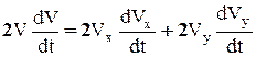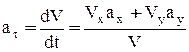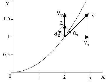 и при t=1 c a1x = 0 см/c2, a1y = 2 см/c2, a1 = 2 см/c2. (4) Касательное ускорение найдем, дифференцируя по времени равенство V2=V2x+V2y. Получим