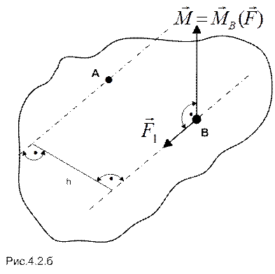 Заметим, что момент пары сил Эквивалентные системы сил, изображенные на рис. 4.1 и рис. 4.2.б, иллюстрируют лемму: состояние абсолютно твердого тела не изменится при параллельном переносе силы, если дополнительно приложить момент пары сил, равный моменту силы относительно новой точки ее приложения.