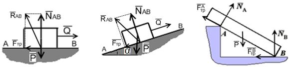 Реакция шероховатой опорной поверхности представляется в виде суммы двух сил – нормальной реакции и силы трения: