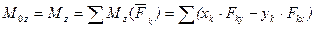 2) В точке О прикладываем вектор-моменты всех сил, равные моментам всех присоединенных ПС, и получаем вторую систему сходящихся векторов. Выполняем операцию геометрического сложения и находим главный момент СС относительно центра приведения. Главным моментом системы сил относительно точки О тела, называется вектор, равный векторной сумме моментов всех сил системы относительно этой точки.