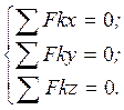 Это и есть уравнения равновесия пространственной сходящейся системы сил.